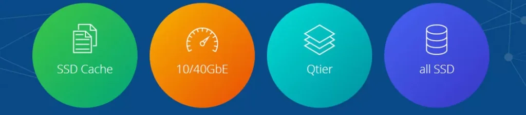 Embora configurações totalmente em flash ofereçam o desempenho máximo, seu custo pode ser proibitivo. A QNAP propõe a combinação de discos SSD e HDD com o Qtier™ — tecnologia de tiering automático — que aloca dados com base em sua frequência de acesso.