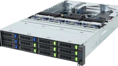 O GIGABYTE R263-Z35-AAL1 é um servidor rack 2U de alta densidade, equipado com processadores AMD EPYC™ 9005/9004, suporte a 3 GPUs PCIe Gen5, 12 canais…