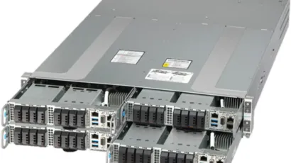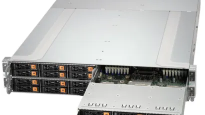 O Supermicro SuperServer SYS-211GT-HNTR é um servidor 2U com 4 nós hot-pluggable, compatível com CPUs Intel Xeon 5ª/4ª geração, suporte para até 24 unidades NVMe/SATA…