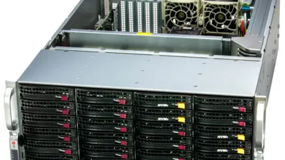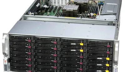 Servidor corporativo 4U Supermicro com 36 baias hot-swap, processadores Xeon de 5ª/4ª geração, até 4TB DDR5, conectividade 10GbE e redundância completa. Ideal para ambientes críticos…