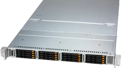 Servidor 1U all-flash com suporte a 8 NVMe E3.S, 4 CXL E3.S, processadores Intel Xeon Scalable Gen5, até 8TB DDR5 e fontes redundantes de 1600W.