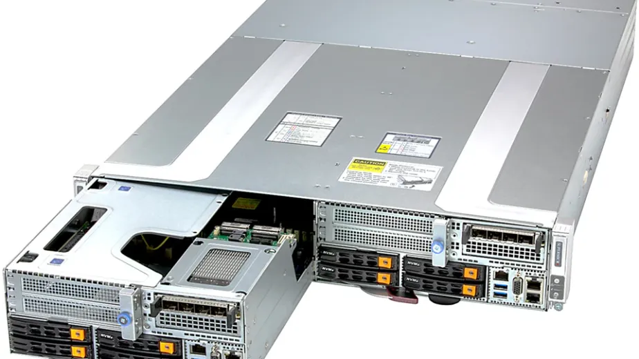 Formato 2U para racks padrão, ideal para datacenters e ambientes corporativos.