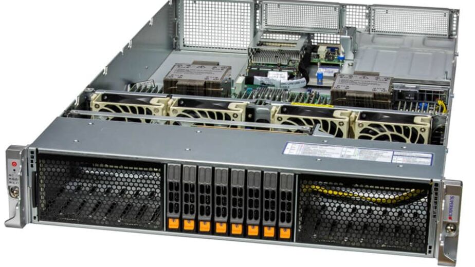 O sistema possui dois nós independentes em um único chassi 1U, permitindo operações paralelas e alta densidade computacional.