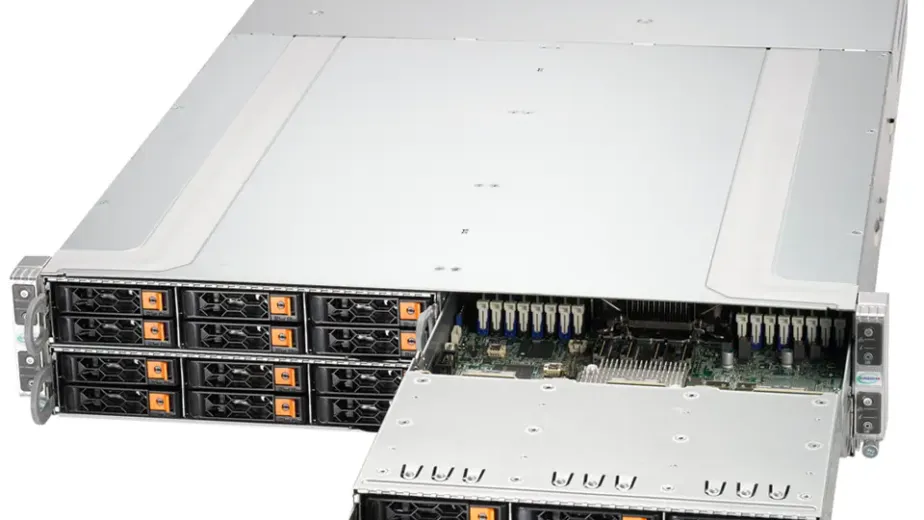 Oferece 8 baias frontais E1.S NVMe e 2 slots M.2 NVMe onboard.