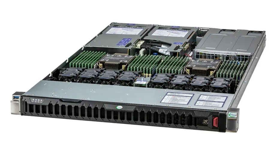 Suporta até 36 unidades NVMe E3.S 1T hot-swap frontais e 2 slots M.2 PCIe 5.0 por nó.
