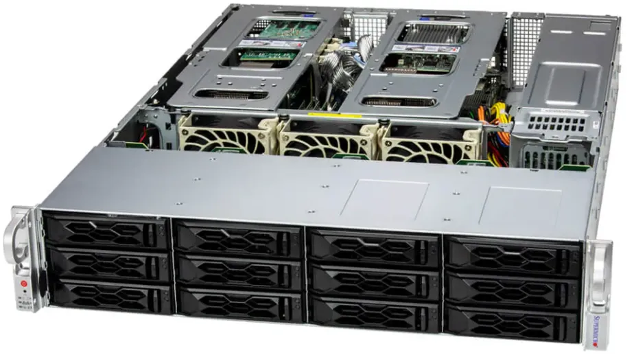 Sua estrutura 2U com 12 baias hot-swap híbridas NVMe/SATA/SAS e 8 slots PCIe garante flexibilidade e desempenho de I/O incomparável, além de possuir certificação Nvidia para aplicações com GPU.