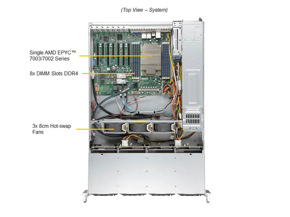 • Processador: Suporte a AMD EPYC série 7002/7003 (até 280W TDP)