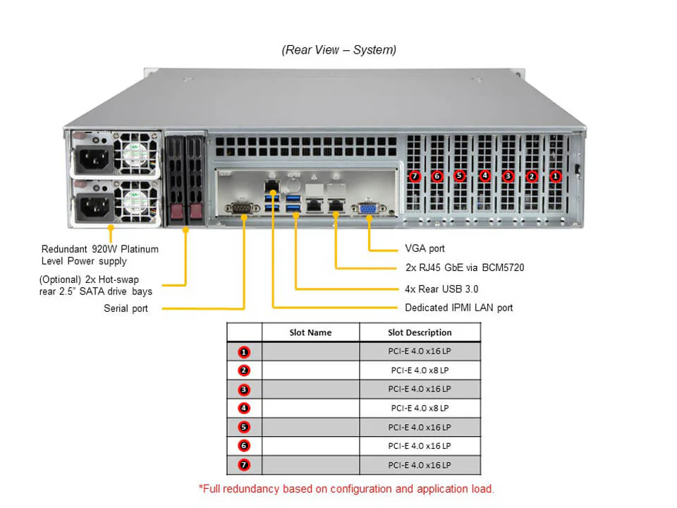 Sim, conta com duas fontes redundantes de 920W com certificação Platinum.