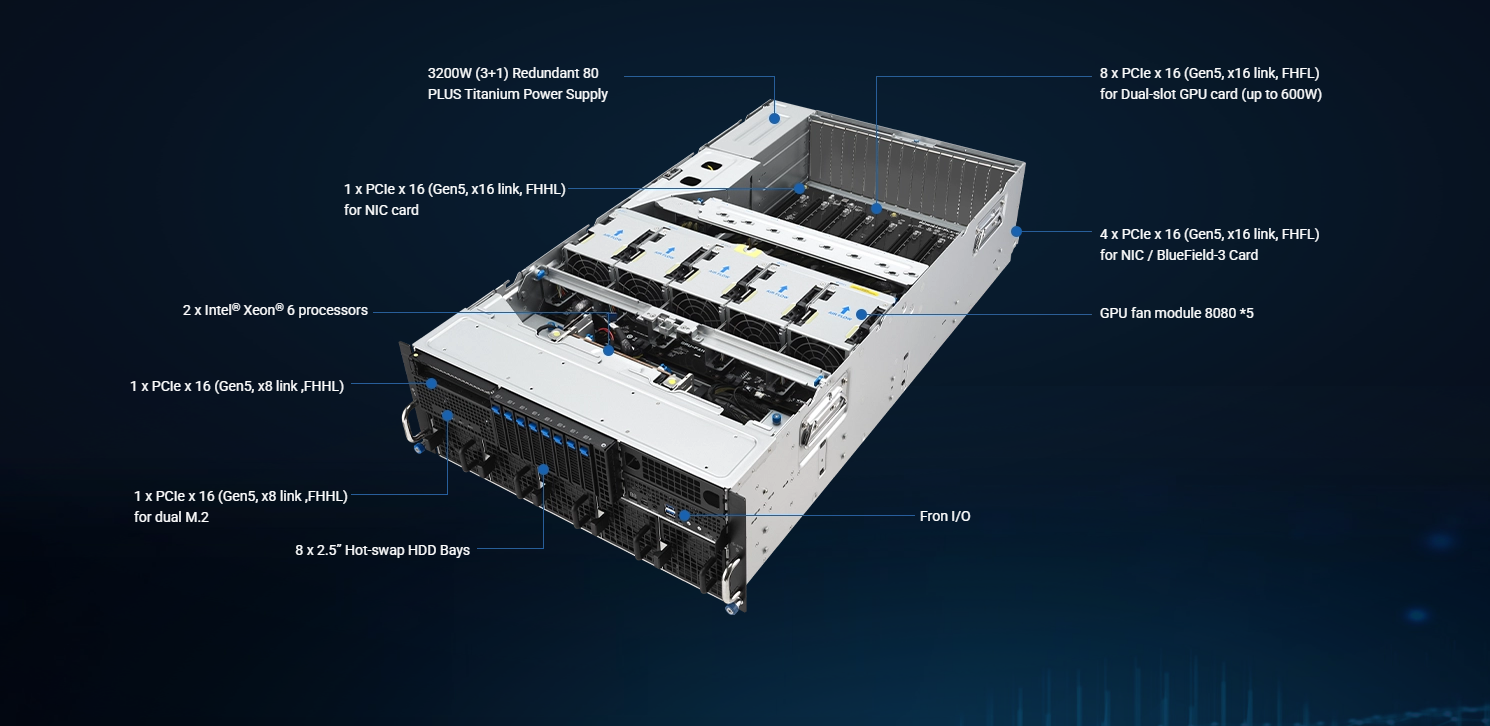 No cenário corporativo atual, empresas enfrentam o desafio de equilibrar desempenho, eficiência e escalabilidade em suas infraestruturas de IA. Soluções proprietárias, embora poderosas, limitam a flexibilidade. É nesse contexto que a ASUS se destaca com o ESC8000-E12P, oferecendo uma arquitetura aberta, modular e totalmente compatível com as GPUs mais avançadas do mercado — de NVIDIA H200 e RTX PRO 6000 Blackwell até o Intel Gaudi 3 PCIe AI Accelerator.