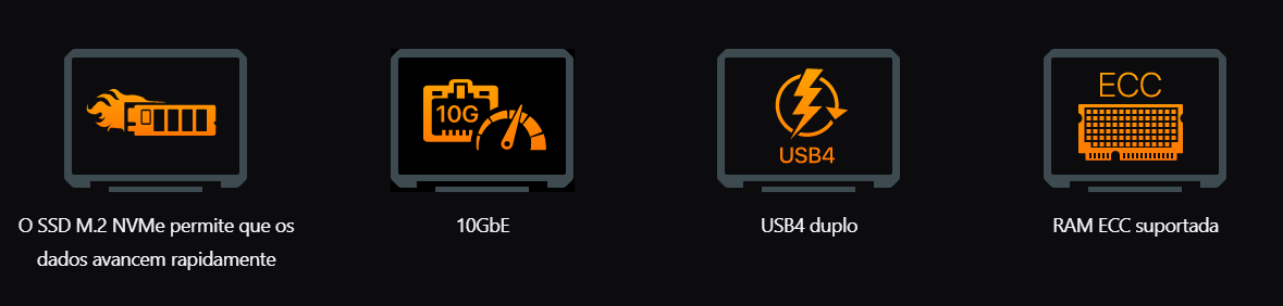 O Flashstor 6 Gen2 reúne NVMe PCIe 4.0, 10GbE, Ryzen Embedded V3C14, ECC e USB4 em uma solução compacta e silenciosa. Com ADM, a plataforma entrega firewall, ClamAV, AES-256, 2FA, VPN, SSL, snapshots Btrfs, Cloud Backup Center e DataSync Center, além de expansão para HDDs via AS5004U.