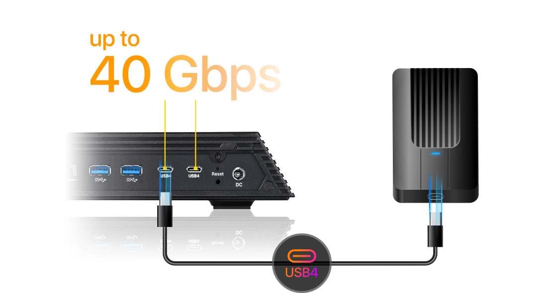 A integração de portas USB4 adiciona outra camada de flexibilidade estratégica. Com até 40 Gbps de largura de banda, profissionais podem conectar storages externos, dispositivos Thunderbolt 3/4 ou fluxos temporários de ingestão de conteúdo sem comprometer a performance interna do NAS. É importante notar que CPUs Ryzen Embedded V3000 não suportam conexões host-to-host via USB4, porém o suporte para storage externo permanece funcional e extremamente valioso para pipelines dinâmicos.