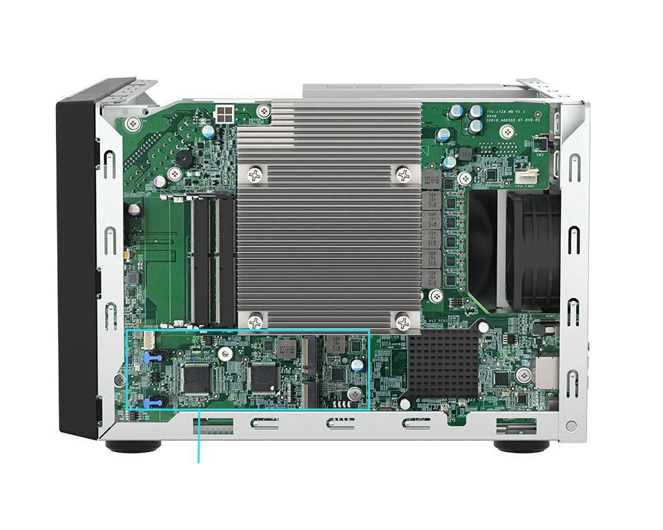 Com 8 baias para HDD/SSD SATA e suporte adicional a slots M.2 NVMe PCIe Gen 4, o TVS-h874T permite arquiteturas híbridas de armazenamento, unindo grande capacidade com camadas de cache acelerado. Isso resulta em um ambiente de alto throughput para arquivos grandes e baixa latência para operações de metadados.