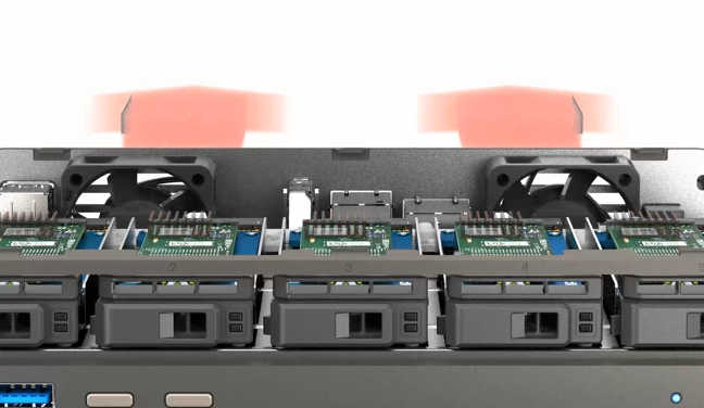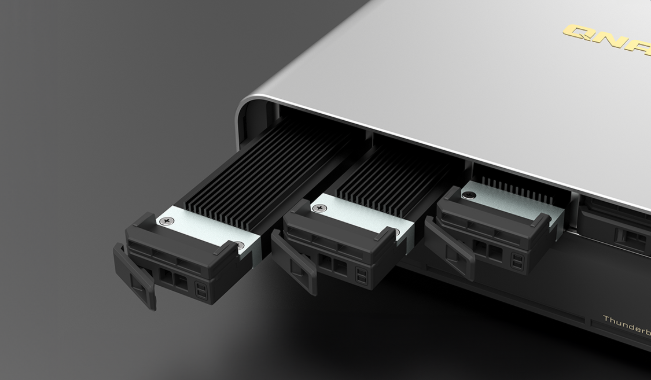 SSDs NVMe podem sobreaquecer sob cargas a alta velocidade e sofrer redução de desempenho. Use dissipadores recomendados (HS-M2SSD-07, TPAD-M2SSD-04) e aproveite as ventoinhas duplas do TBS-h574TX para manter a estabilidade. Essa atenção garante que a edição em tempo real e as transferências sustentadas ocorram com qualidade previsível.