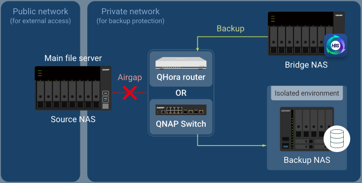 O emparelhamento do QHora-322 com um NAS QNAP é fortemente recomendado para cenários empresariais. Ao posicionar o router à frente do NAS, a tradução de endereços de rede (NAT) oculta o IP real do dispositivo, reduzindo a superfície de ataque.