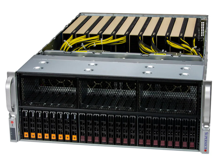 O SYS-421GE-TNRT aborda esse problema com suporte a até 10 GPUs NVIDIA de última geração, interconectadas via PCIe 5.0 dual-root e com suporte opcional a NVIDIA NVLink, garantindo alta largura de banda entre GPUs e máxima eficiência computacional para workloads críticos.