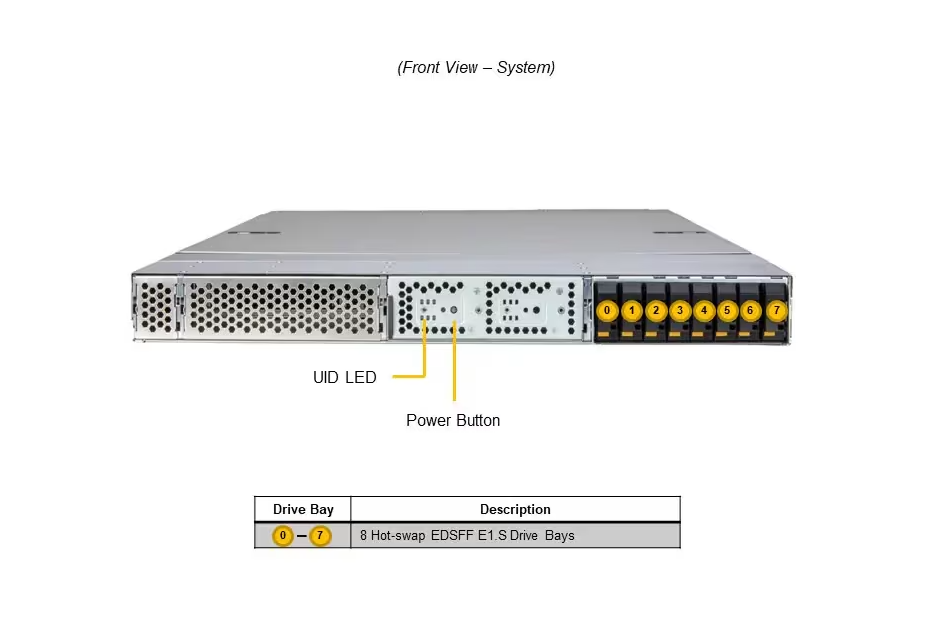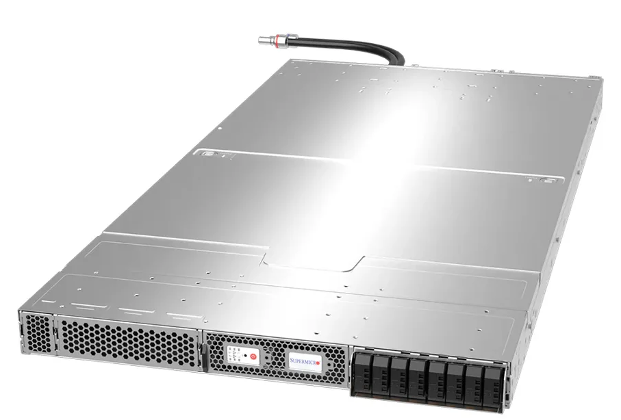 O sistema ainda suporta drives E1.S NVMe diretamente conectados à CPU, garantindo armazenamento de alta velocidade com baixa latência, enquanto o resfriamento líquido D2C assegura estabilidade térmica mesmo em cargas extremas.
