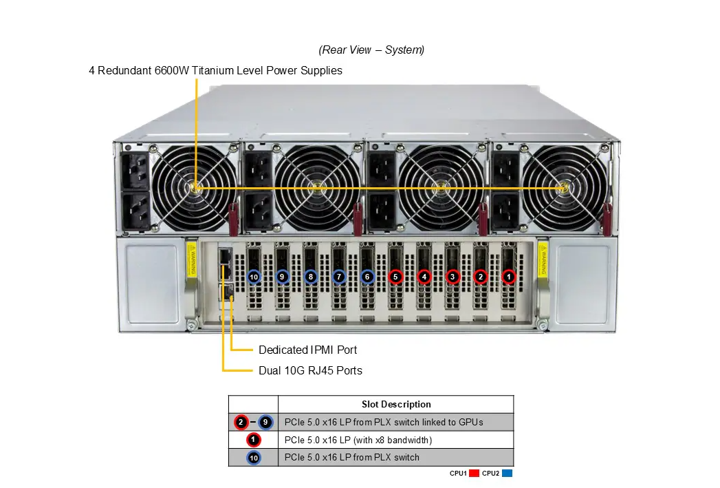 Do ponto de vista de manutenção, o design hot-swap dos 8 drives NVMe U.2 e 2 M.2 frontais simplifica upgrades e substituições sem interrupção de serviço, característica essencial em data centers de IA e HPC onde o tempo de inatividade é inaceitável.