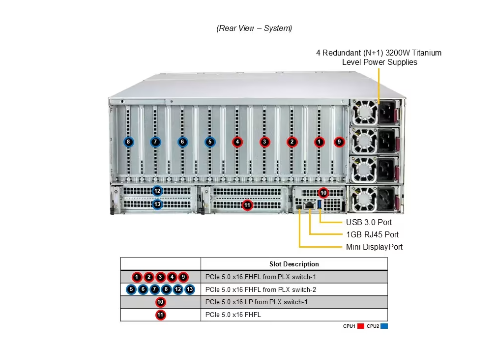 Em sistemas tradicionais, a comunicação entre CPU e GPU pode se tornar um gargalo crítico. O SuperServer utiliza arquitetura Dual-Root PCIe 5.0 x16 para cada CPU, permitindo máxima largura de banda dedicada às GPUs e reduzindo latência de comunicação, essencial para operações de deep learning distribuído e simulações financeiras em tempo real.