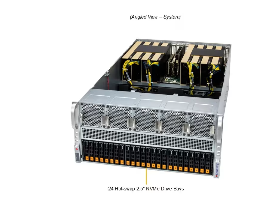 O SuperServer SYS-522GA-NRT, um servidor GPU 5U Dual-Root com até 10 GPUs NVIDIA RTX PRO™ 6000 Blackwell Server Edition, oferece solução robusta para esses desafios. Com suporte a até 6TB de memória DDR5 ECC e armazenamento NVMe massivo, ele endereça gargalos em processamento paralelo, throughput de dados e latência de I/O.