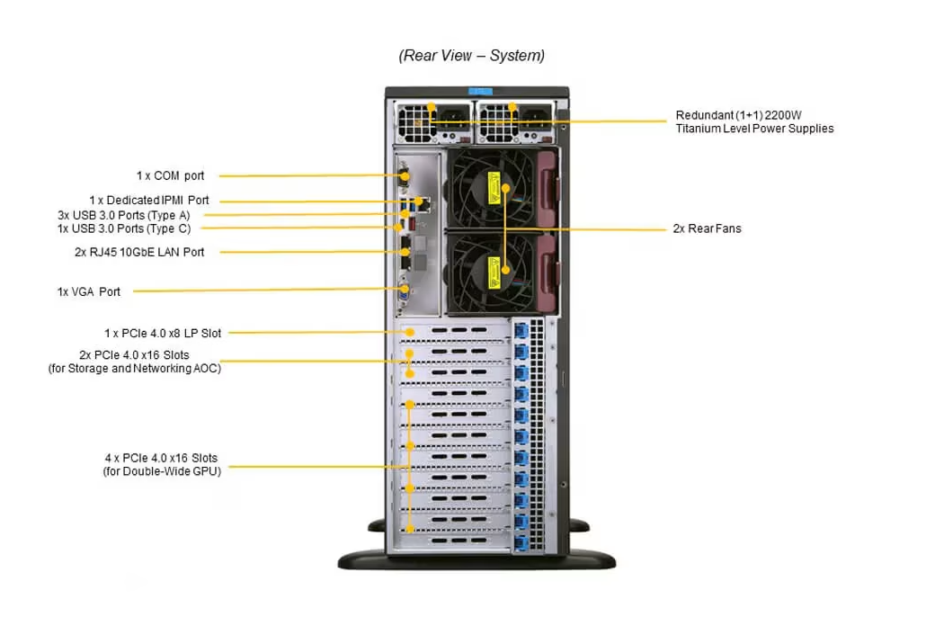 O SuperServer SYS-740GP-TNRT oferece uma solução full-tower completa para empresas que necessitam de HPC e IA de alto desempenho. Sua combinação de processadores Intel Xeon, GPUs NVIDIA certificadas, memória expansível e gerenciamento avançado proporciona confiabilidade, escalabilidade e segurança.
