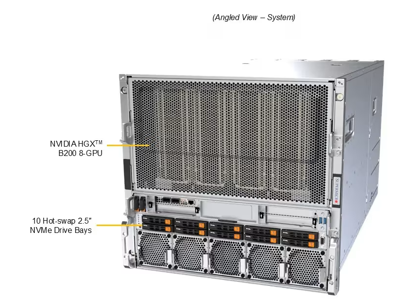 em larga escala. Com sua arquitetura 10U otimizada, 8 GPUs NVIDIA B200, CPUs Xeon escaláveis