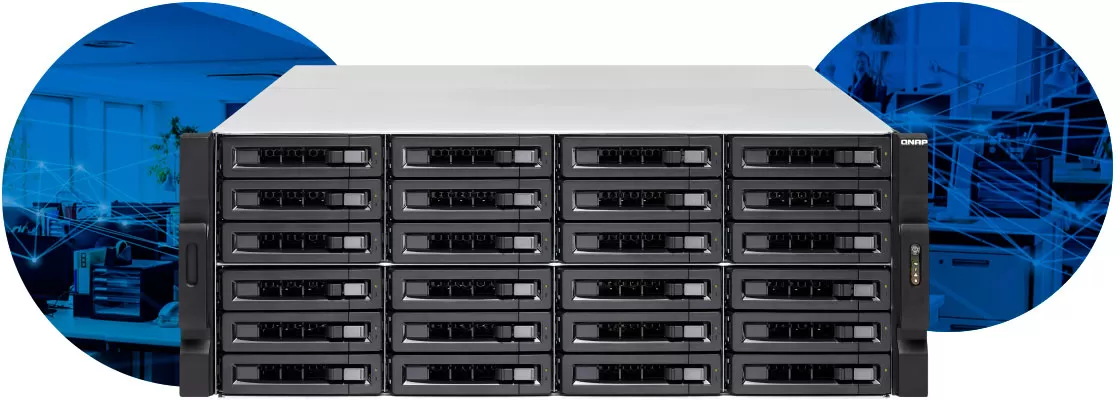 Fabricantes como a QNAP oferecem modelos rackmount e desktop com suporte a discos SATA, SAS ou SSDs, interfaces de alta velocidade (Gigabit, 10GbE), recursos de criptografia e sistemas operacionais proprietários com aplicações integradas para gerenciamento e segurança.